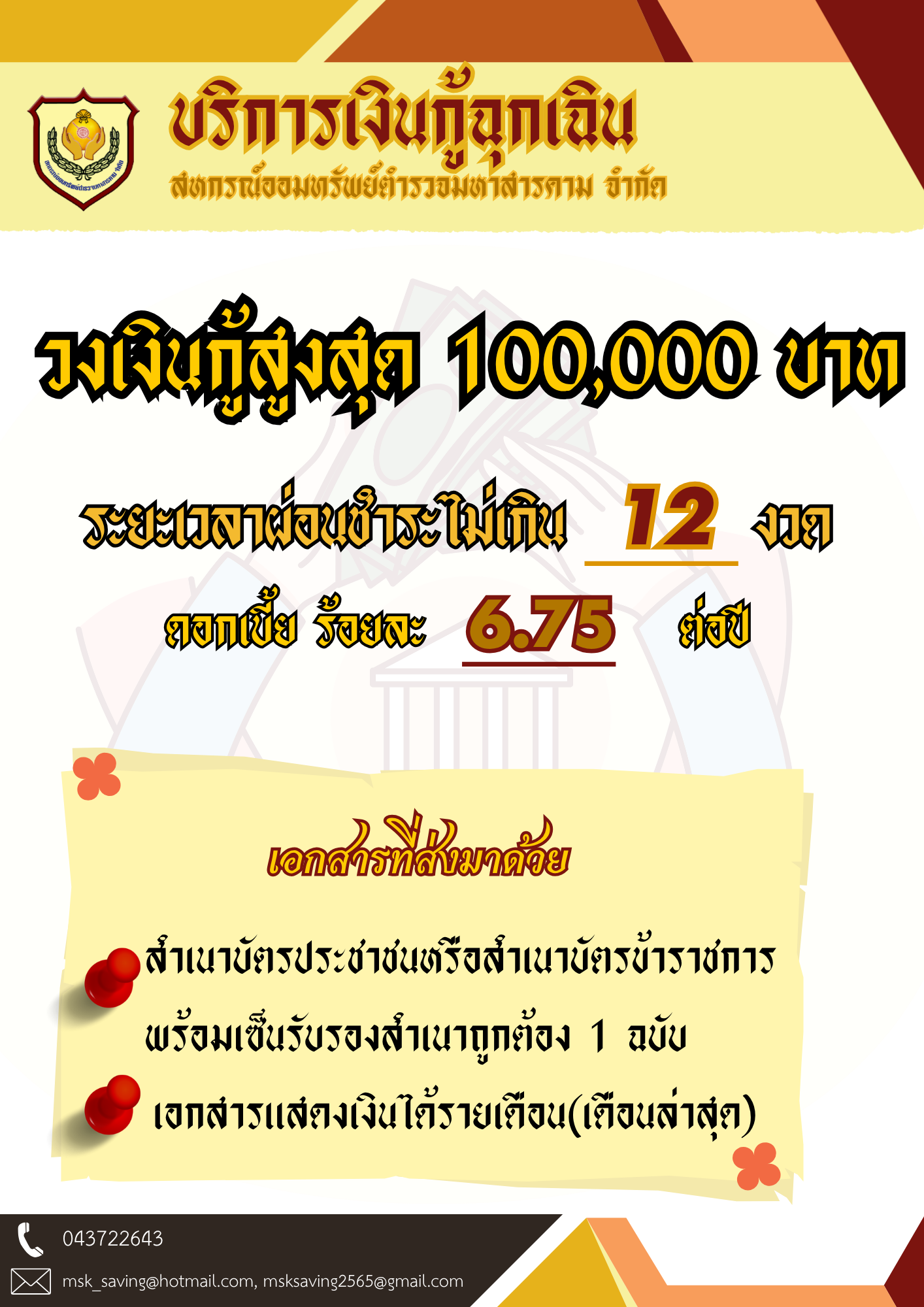 ประกาศสหกรณ์ออมทรัพย์ตำรวจมหาสารคาม จำกัด