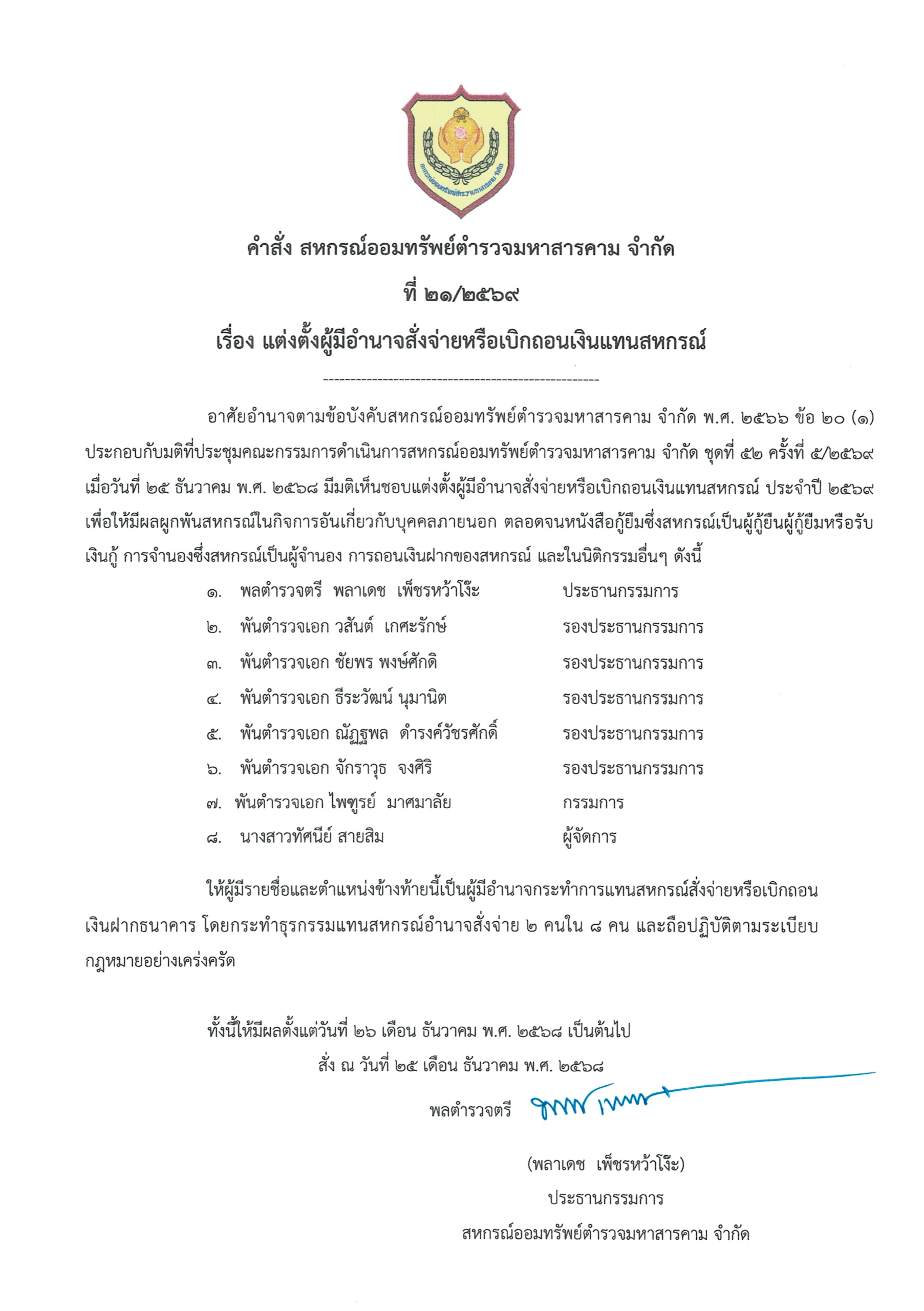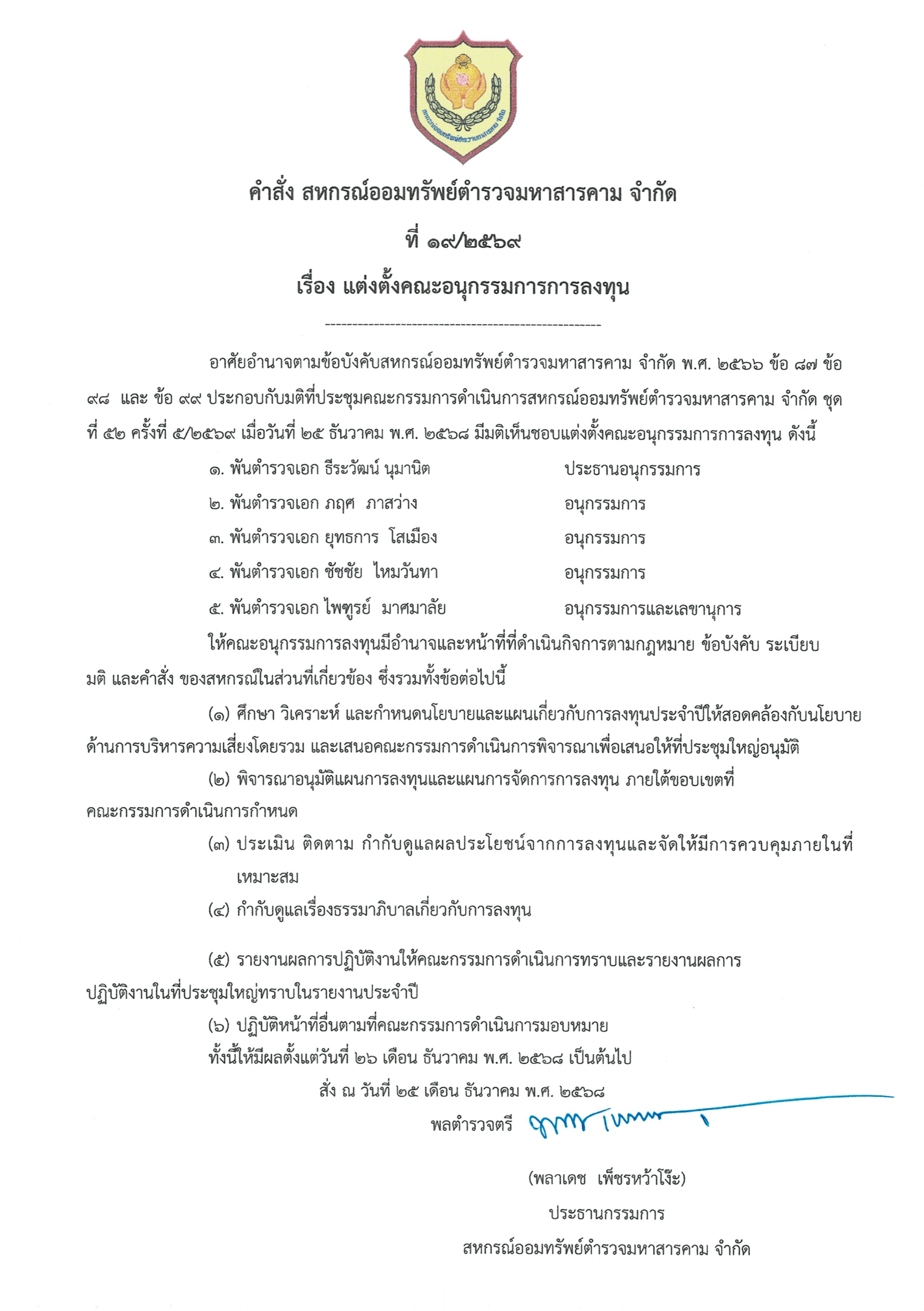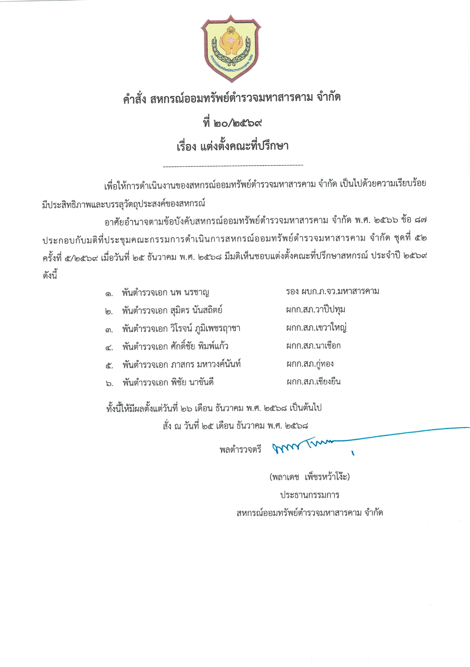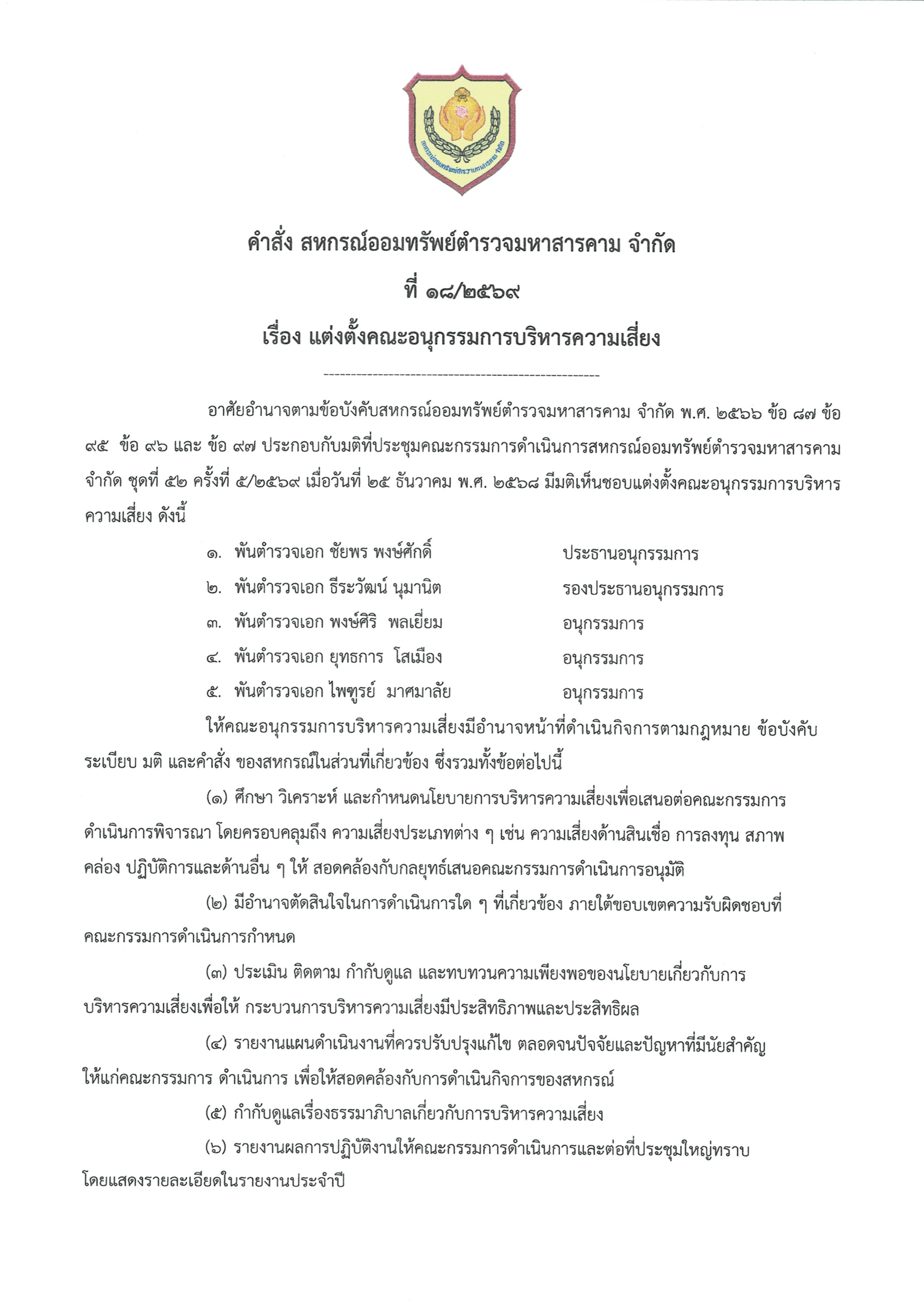 เมื่อวันที่ 27 มกราคม 2569 เวลา 09.00 น. ณ ห้องประชุมสหกรณ์ออมทรัพย์ตำรวจมหาสารคาม จำกัด